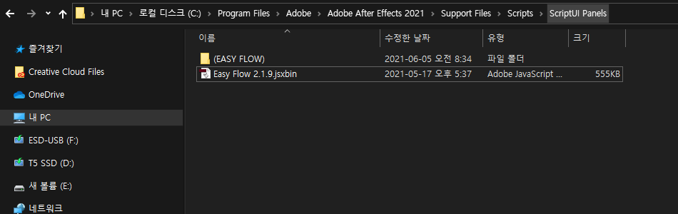 각 OS별 경로를 참고하여 ScriptUI Panels 폴더 안에 2에서 복사한 파일들을 모두 붙여넣기(Ctrl+V) 해주세요.